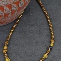 Handcrafted by artisans from the Black Hills of South Dakota. Bronze, goldtone, and silver beads on a single strand with a brown focal gem and smaller jasper beads. A stone of protection which may also bring good luck. Measures 20″ including a gold 4″ extender and lobster claw clasp. Each piece is unique and may vary slightly. Pair with matching earrings AE271.