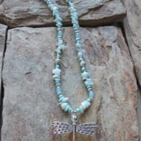 Handcrafted by artisans from the Black Hills of South Dakota. A silver pendant 1.75″ by 2″ on a single strand with aqua gemstone chips and beads. A soothing stone that helps you to see both sides of a problem or different points of view. Measures 20″ including a 4″ extender and lobster claw clasp. Each piece is unique and may vary slightly. Pair with matching earrings AE291.